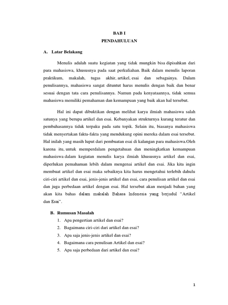 Makalah Artikel Dan Esai Docx Bab I Pendahuluan A Latar Belakang Menulis Adalah Suatu Kegiatan Yang Tidak Mungkin Bisa Dipisahkan Dari Para Course Hero